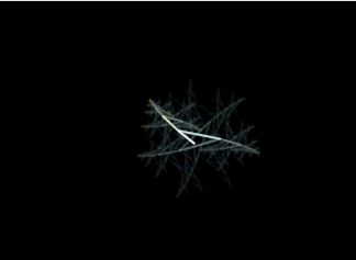My algorithm is a little different than Theodore Gray's. Aside from the obvious difference that I move the locators automatically, I also allow the locators to be at any angle relative to the "trunk" of the tree (which is the hour hand in the screen saver). In Theodore's version, the locators cannot go below the top of the trunk. This change makes many more interesting patterns possible.